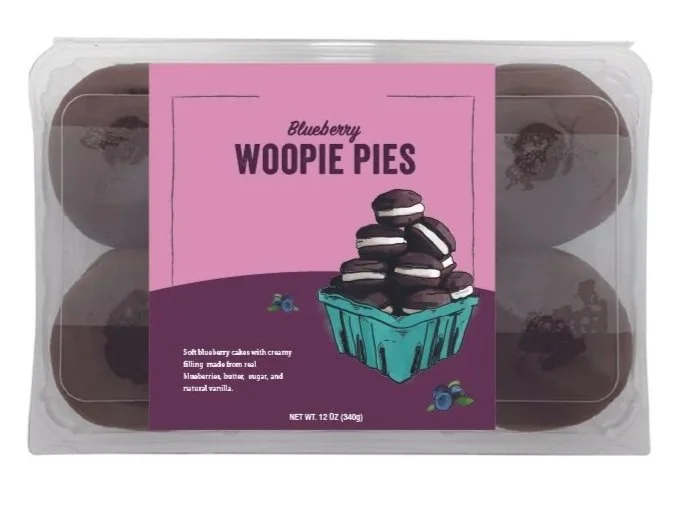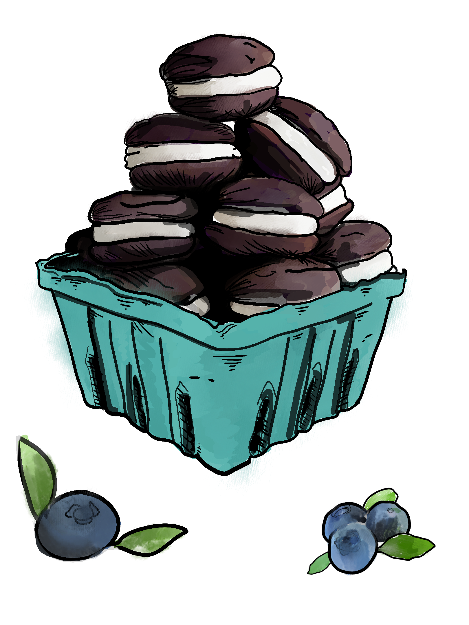 A fun, illustrated take on blueberry woopie pies, highlighting sweetness and nostalgia.