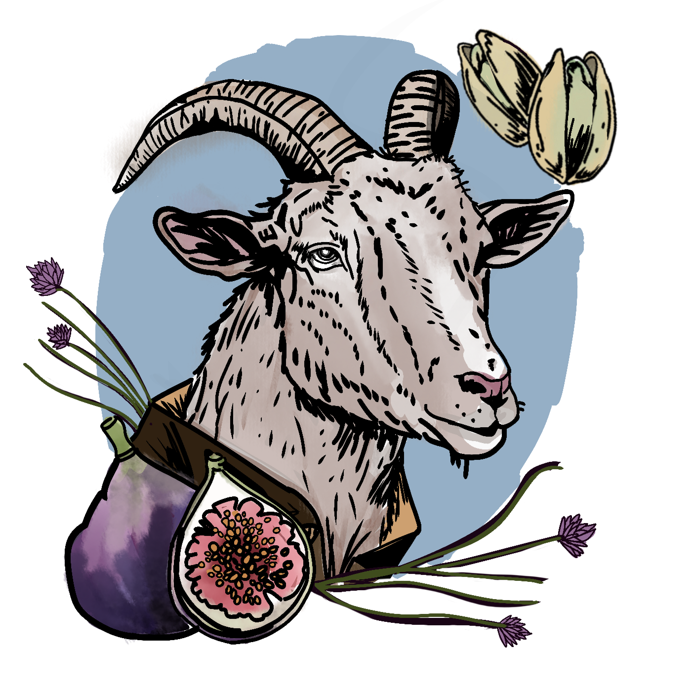Playful illustration inspired by the rich, savory sweet flavor of pistachio and fig goat cheese.