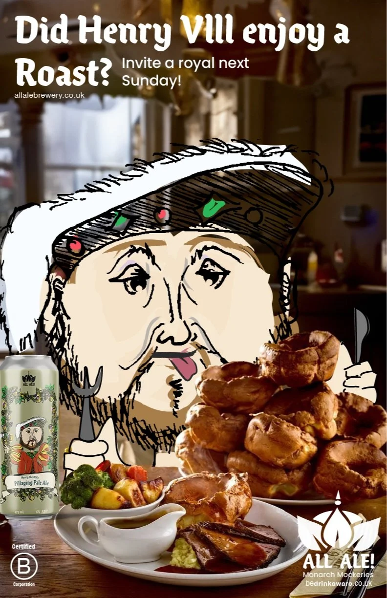 All Ale! is a craft beer brand that blends history, wit, and artistry into every can. Featuring hand-drawn illustrations inspired by classic political cartoons, All Ale! pays homage to the rich tradition of satire and storytelling that has shaped British culture for centuries. Just as beer has long brought people together, political cartoons have offered a clever lens on society—informing, entertaining, and sparking conversation. By uniting these two cultural staples, All Ale! creates a drinking experience that is not only enjoyable but also steeped in history and humor, making every sip a nod to Britain’s vibrant past.