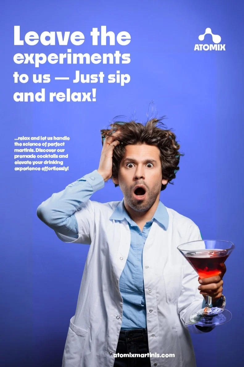 Atomix offers a unique blend of science and creativity, with visually striking and playful packaging that invites newcomers into the world of martinis. By balancing sophistication with fun, Atomix makes mixology accessible, allowing anyone to explore the art of cocktail crafting with ease.